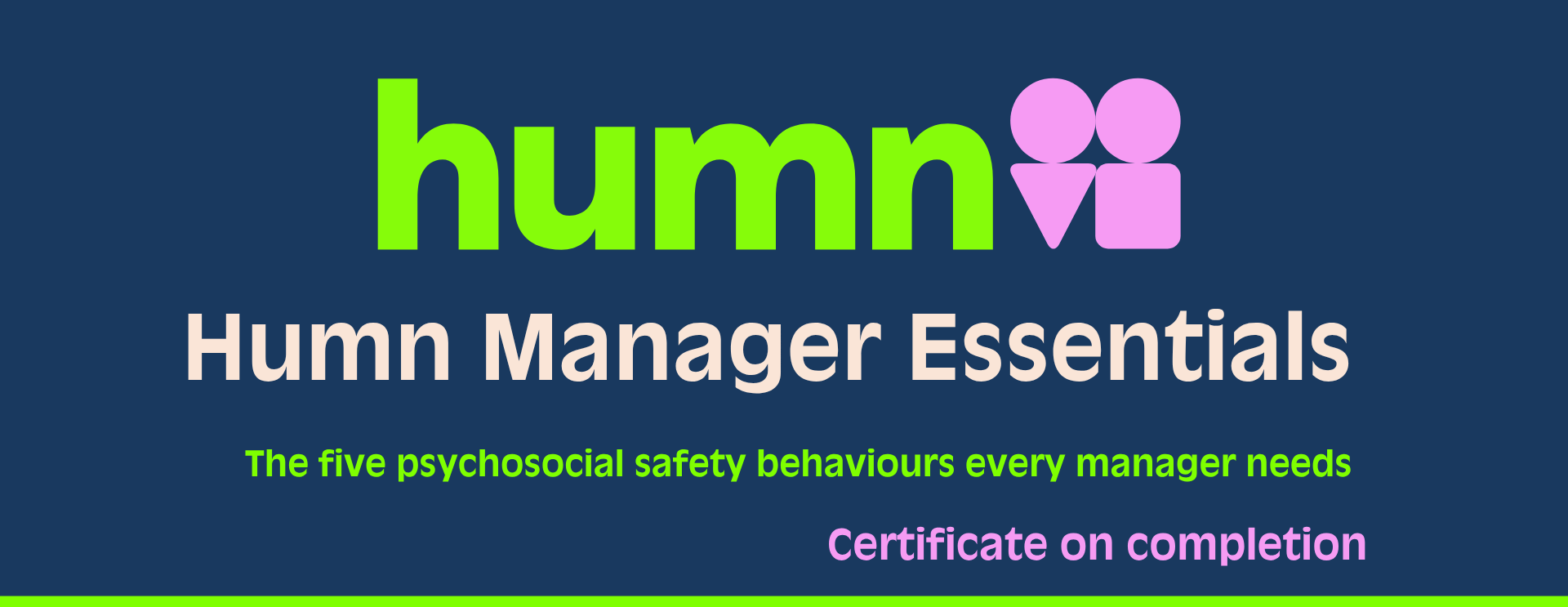 Manager behaviour is one of the biggest drivers of psychosocial risk in any Australian workplace. Most managers have never been trained in what actually matters and under the WHS Act, that gap is now a legal exposure. Humn Manager Essentials covers five specific, evidence-based behaviours: role clarity, procedural justice, psychological safety, support and availability, and emotional regulation. Not generic leadership theory. Not a tick-box compliance exercise. Practical skills you can apply from Monday morning. Each module includes narrated lessons, real workplace scenarios, a scenario-based assessment, and a downloadable template you can use immediately with your team. On completion you receive a Humn Manager Essentials digital certificate - shareable on LinkedIn and evidence of your investment in psychosocial safety.